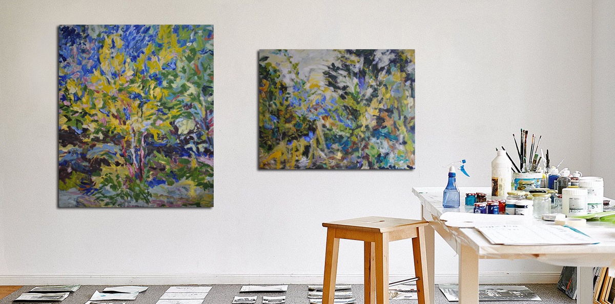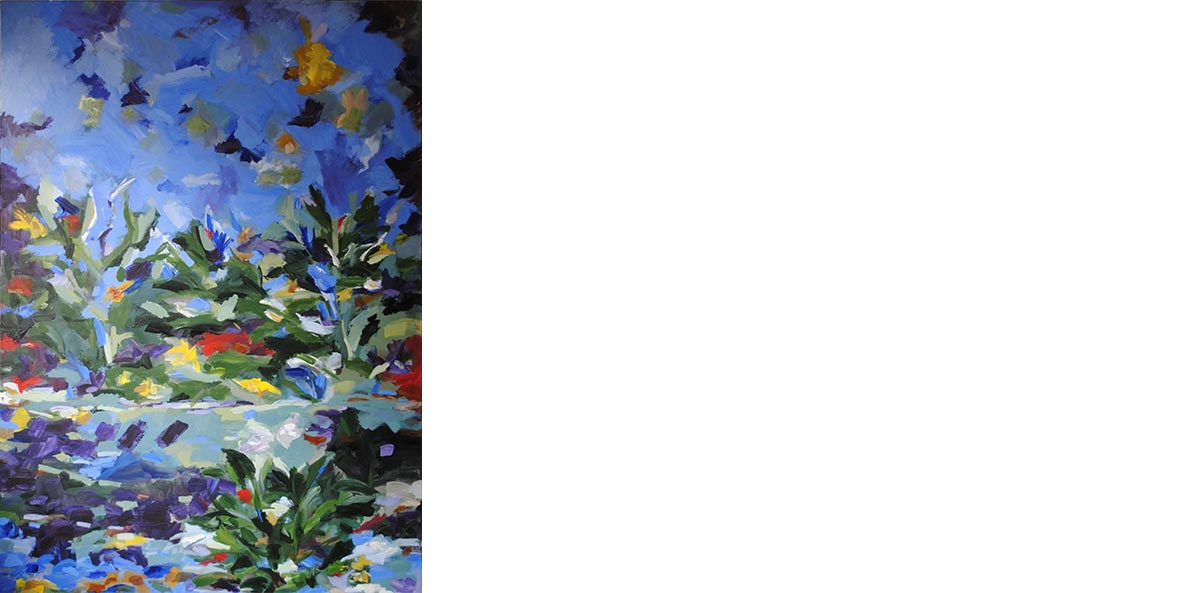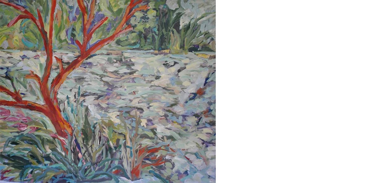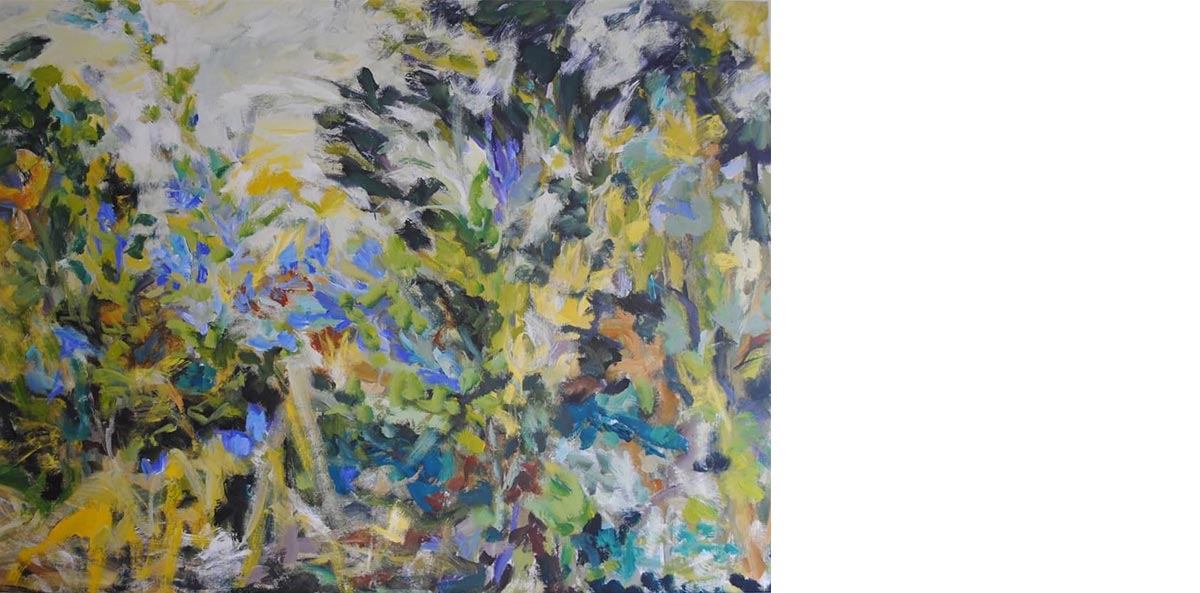 The immensity of the outside captured in works of great size and the expansive gesture of the thick brushes. A coming and going between the city of Buenos Aires and the countryside of Entre Ríos. Works in big scale that, like windows, exalt the native and solitary flora of the fields that grows by the water, the sky and the winds, making the roots and foliage occupy almost all the space.